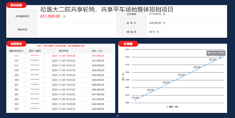 哈爾濱醫(yī)科大學(xué)附屬第二醫(yī)院共享輪椅、共享平車(chē)場(chǎng)地整體招租項(xiàng)目和自助售貨機(jī)場(chǎng)地整體招租兩個(gè)項(xiàng)目在黑龍江聯(lián)合產(chǎn)權(quán)交易所圓滿(mǎn)落槌。其中,共享輪椅、共享平車(chē)場(chǎng)地整體招租項(xiàng)目以48.53%的增值率成交,自助售貨機(jī)場(chǎng)地整體招租項(xiàng)目增值率高達(dá)146.75%,兩個(gè)項(xiàng)目均實(shí)現(xiàn)國(guó)有資產(chǎn)價(jià)值突破性躍升,構(gòu)建起“醫(yī)院資源活化、承租方享收益、醫(yī)患共得便利”的三方共贏(yíng)生態(tài)。