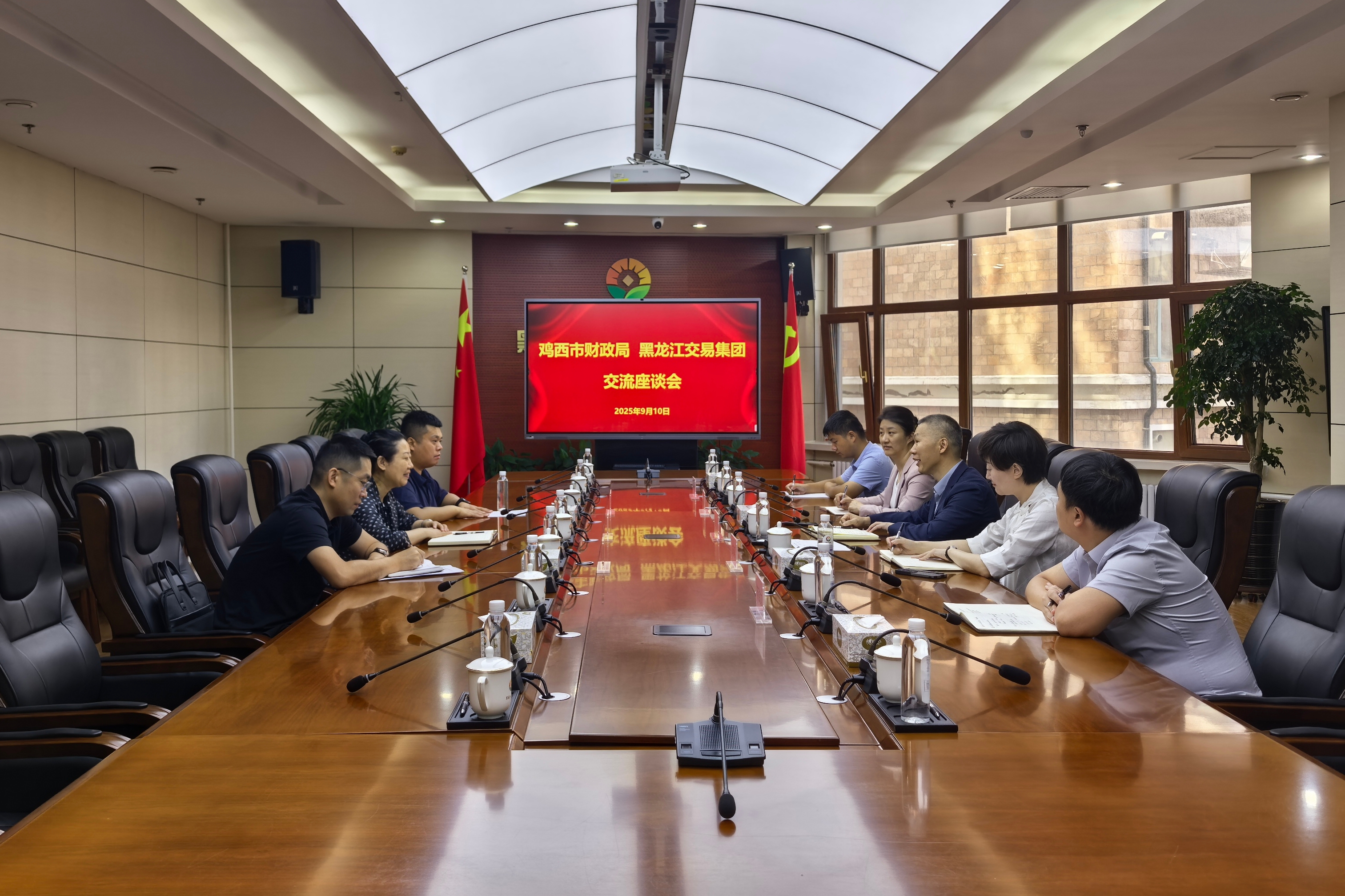 新聞中心 > 集團(tuán)要聞9月10日,雞西市財政局副局長代明一行到黑龍江交易集團(tuán)進(jìn)行座談交流,交易集團(tuán)副總經(jīng)理單勇與來訪客人進(jìn)行座談。雞西市財政局、交易集團(tuán)有關(guān)部門及權(quán)屬企業(yè)相關(guān)同志參加座談。