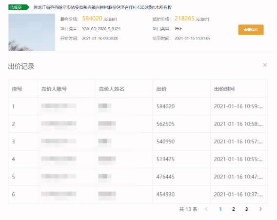 喜報:省農村產權交易平臺依安縣4303棵林木所有權項目成交 溢價率達167.6%