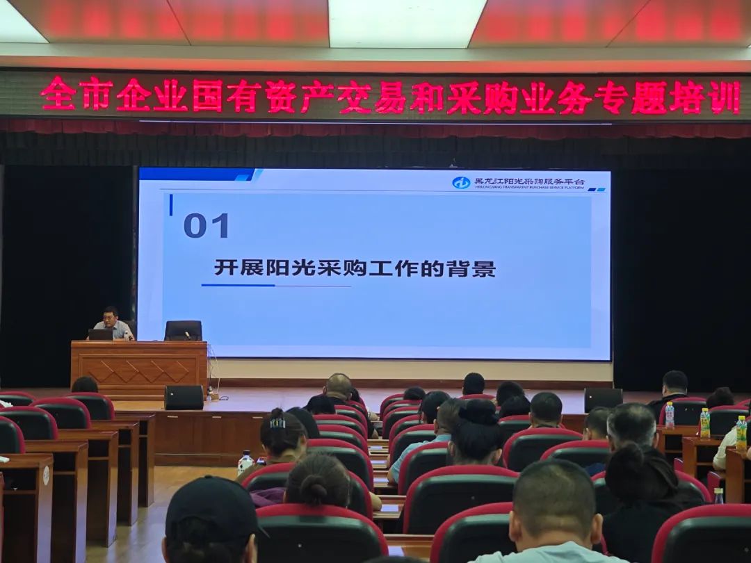 新聞中心 > 子公司動(dòng)態(tài)為深入貫徹落實(shí)省國資委主要領(lǐng)導(dǎo)對交易集團(tuán)提出的“走出去、走進(jìn)去、走上去”工作指導(dǎo)意見,助力地方國資國企改革提質(zhì)增效,8月15日,黑龍江陽光采購服務(wù)平臺(tái)(以下簡稱采購平臺(tái))赴佳木斯市開展“國有企業(yè)陽光采購制度背景及規(guī)則介紹”專題培訓(xùn)。佳木斯市屬國有企業(yè)、縣(市、區(qū))國資監(jiān)管機(jī)構(gòu)及出資企業(yè)共計(jì)110余人參加培訓(xùn)。