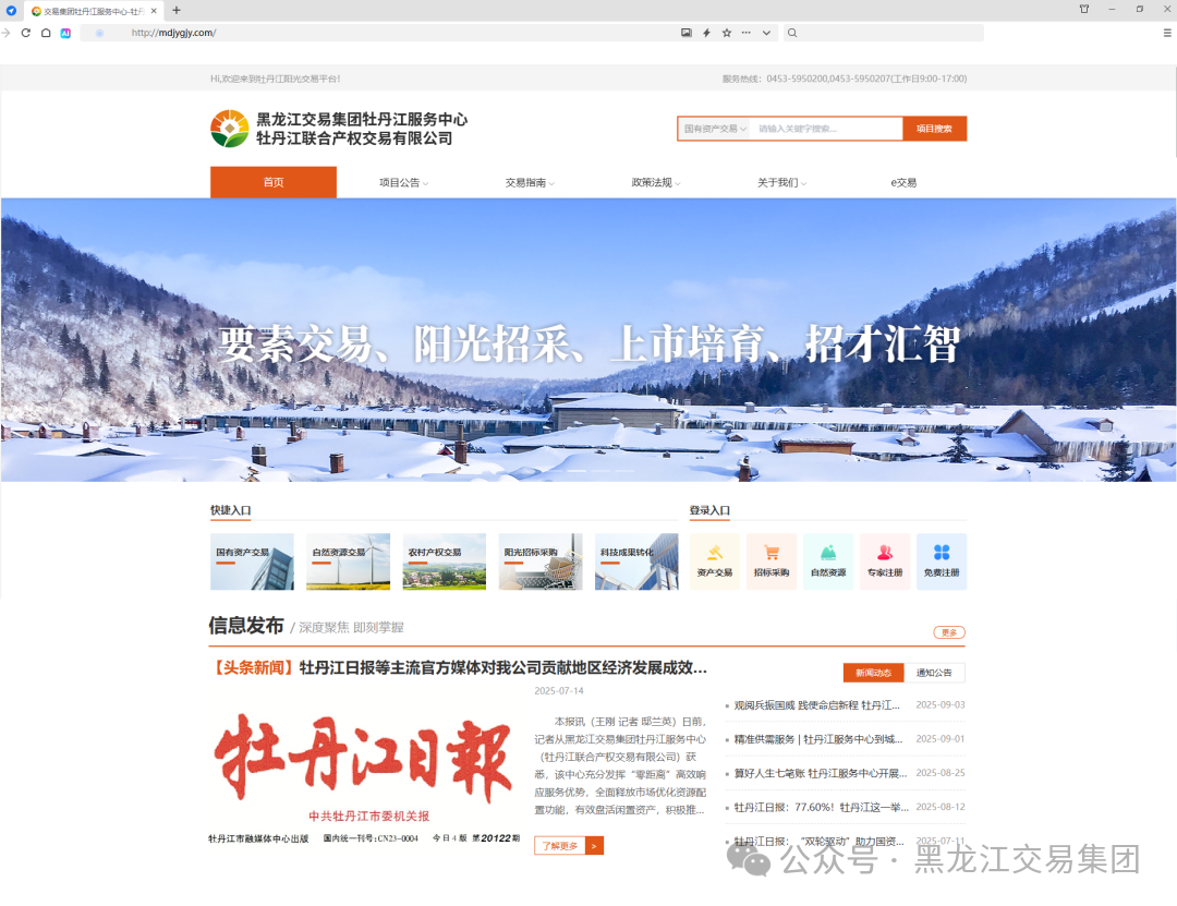 牡丹江聯(lián)合產(chǎn)權(quán)交易有限公司(交易集團(tuán)牡丹江服務(wù)中心)官網(wǎng),牡丹江陽光交易平臺網(wǎng)站于近日正式上線。作為牡丹江市公共資源交易體系重要組成部分,該網(wǎng)站承載國有資產(chǎn)交易、自然資源交易、陽光招標(biāo)采購等全要素交易展示功能,依托全流程陽光交易系統(tǒng),為牡丹江區(qū)域各類要素合規(guī)高效流轉(zhuǎn)提供技術(shù)服務(wù)支持。