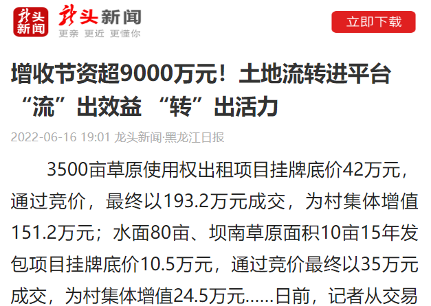 媒體報(bào)道 | 增收節(jié)資超9000萬(wàn)元!土地流轉(zhuǎn)進(jìn)平臺(tái) “流”出效益 “轉(zhuǎn)”出活力
